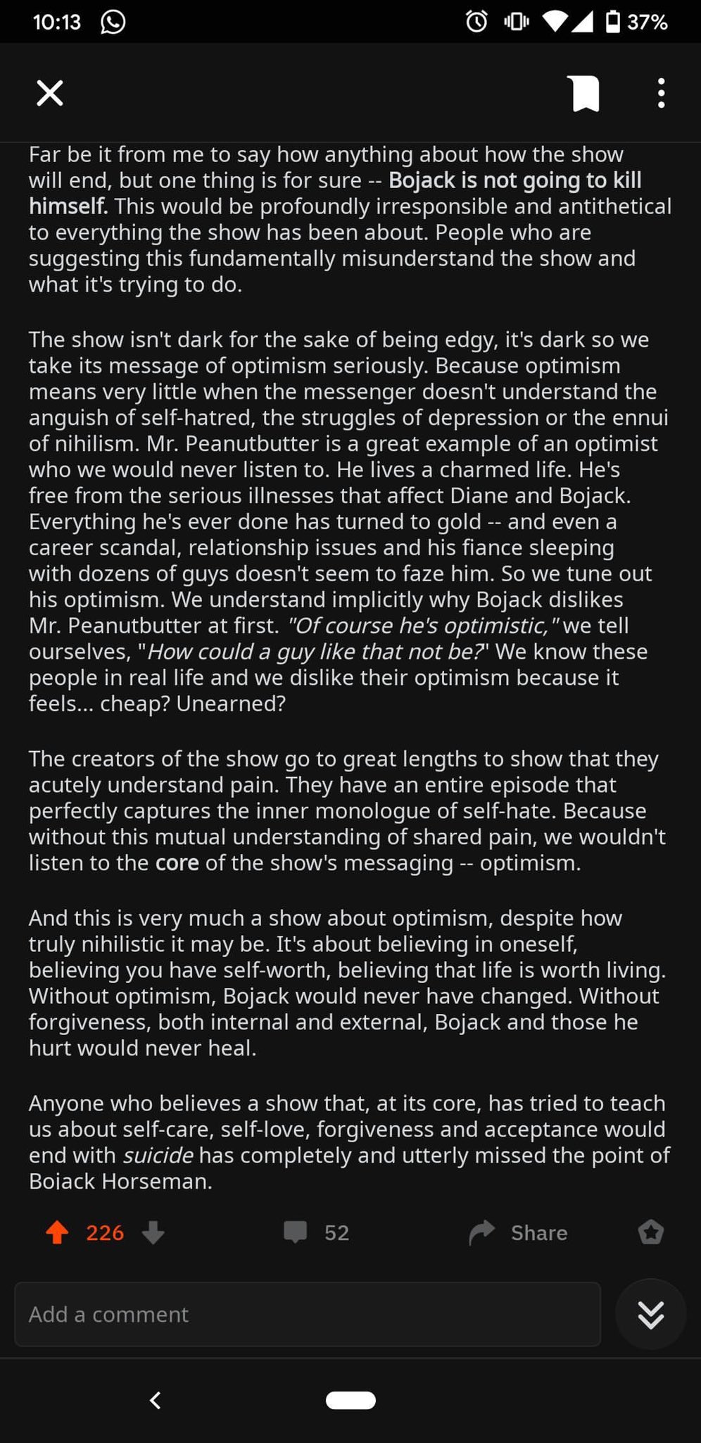 Bojackhiddenjokes On Twitter I Can T Even Believe That Such A Positive Message Came From Reddit But Damn I M Here For Every Word Of It Https T Co U4bwmc6hfx Twitter